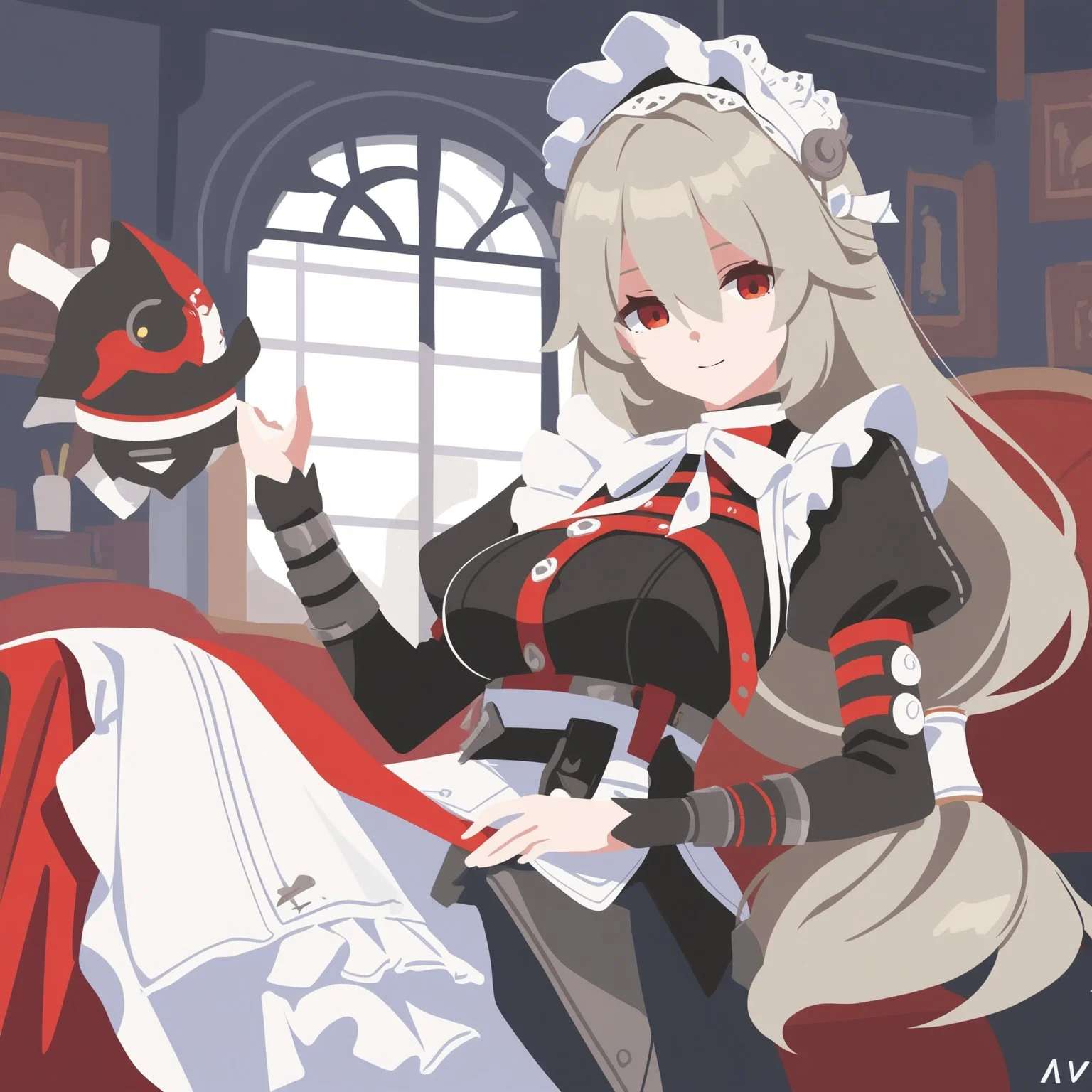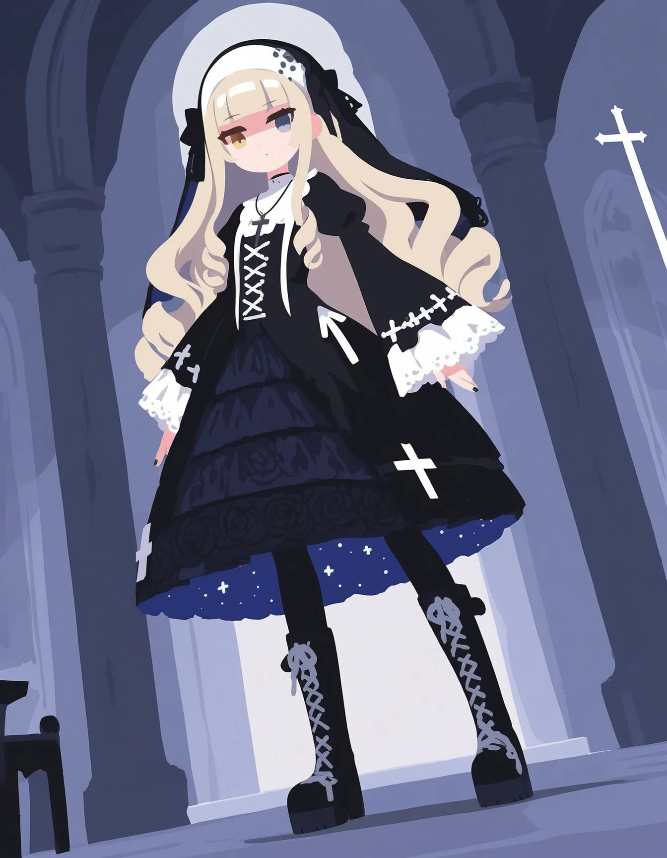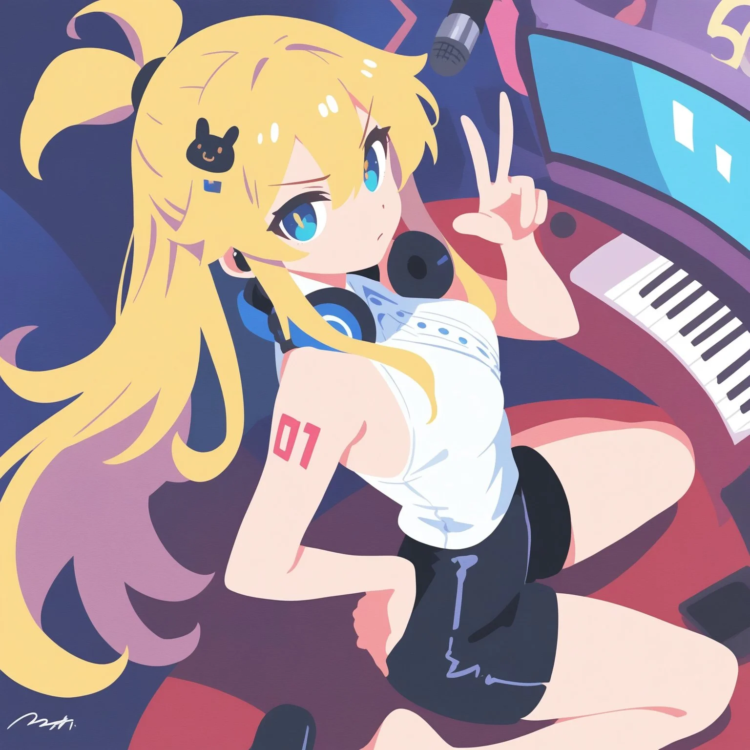 sample, 1girl, red eyes, hair between eyes, blonde hair, cowboy shot, masterpiece, very aesthetic,