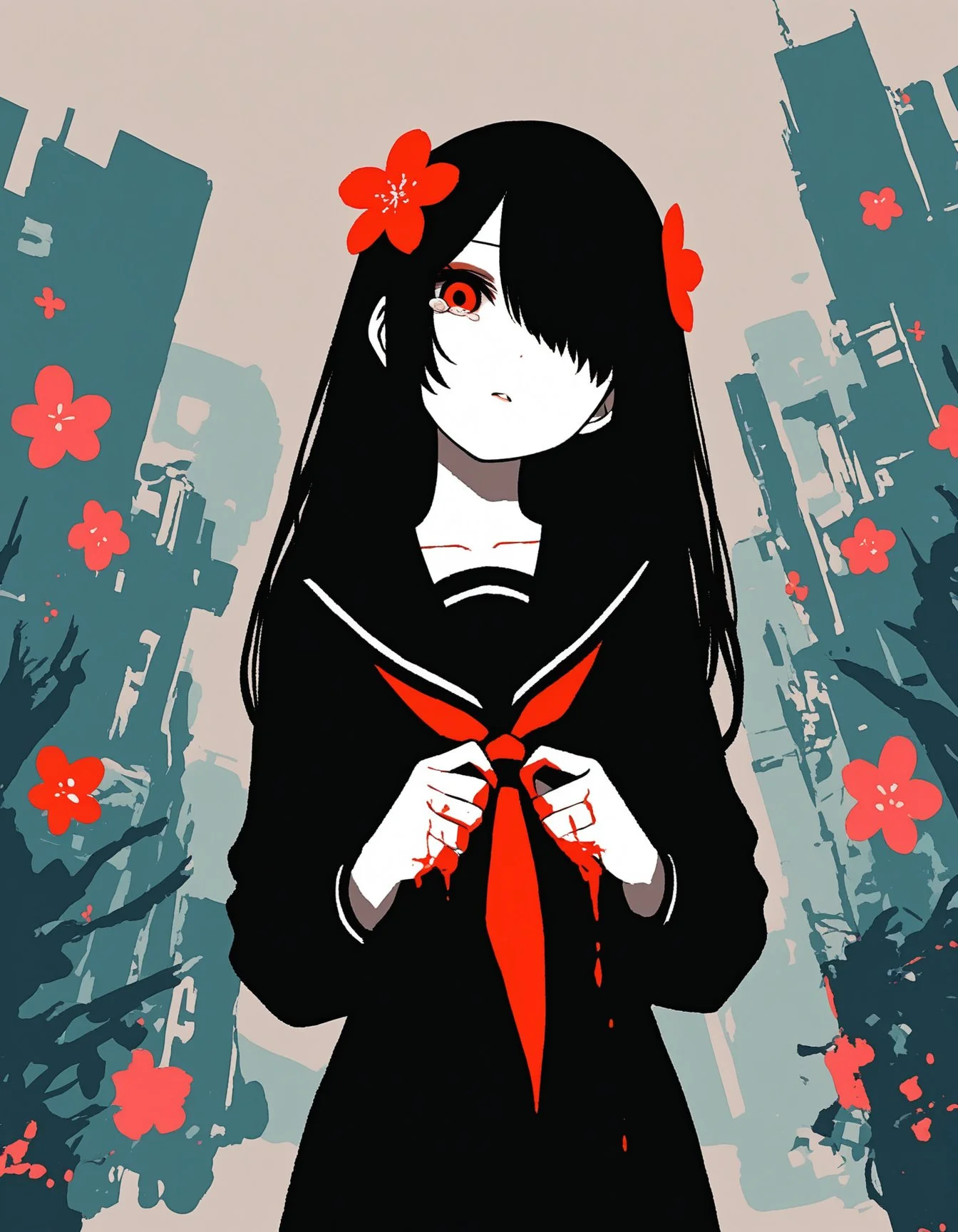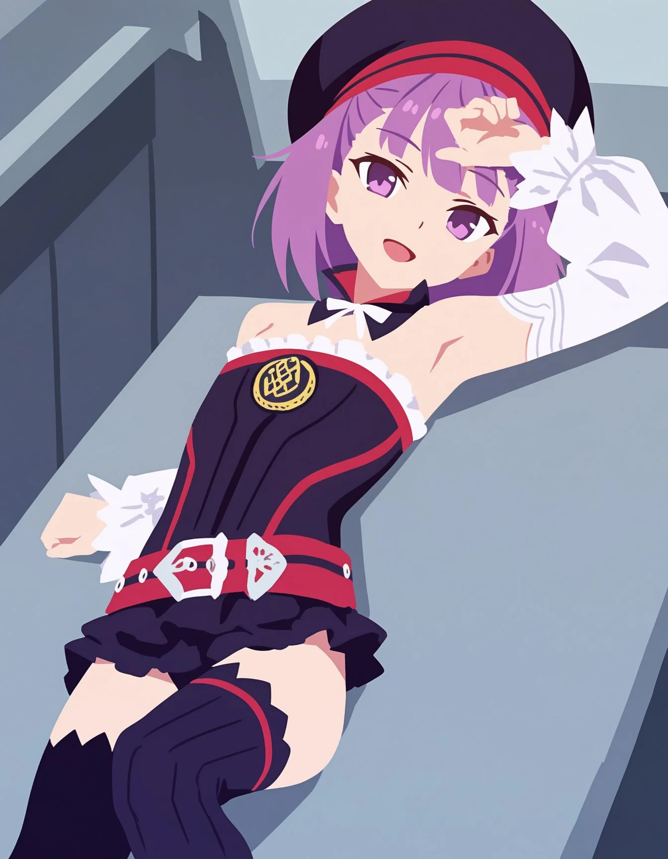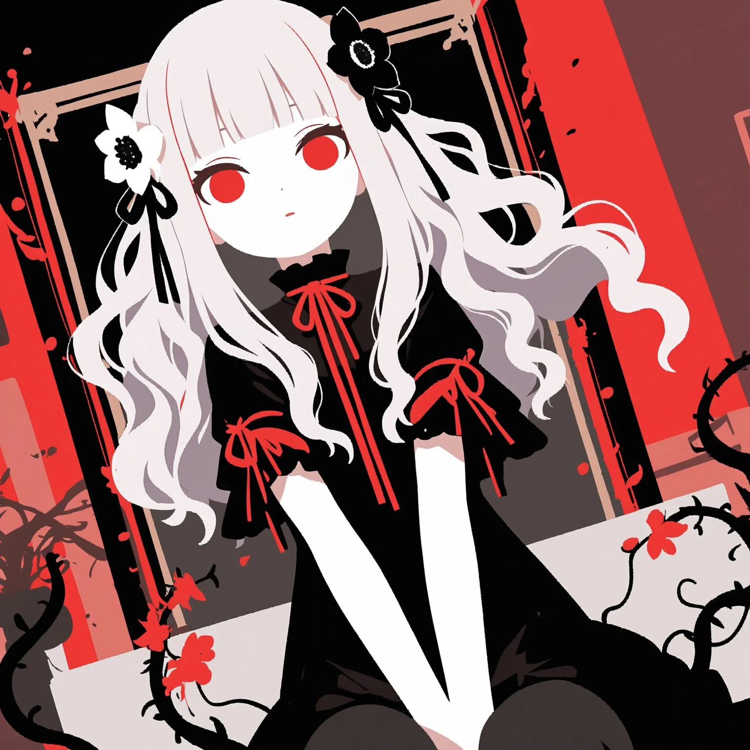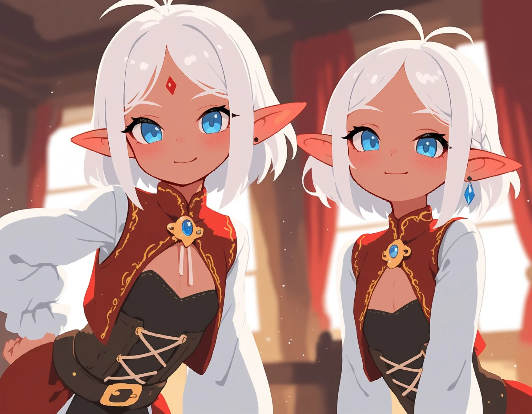 sample, 1girl, red eyes, hair between eyes, blonde hair, cowboy shot, masterpiece, very aesthetic,