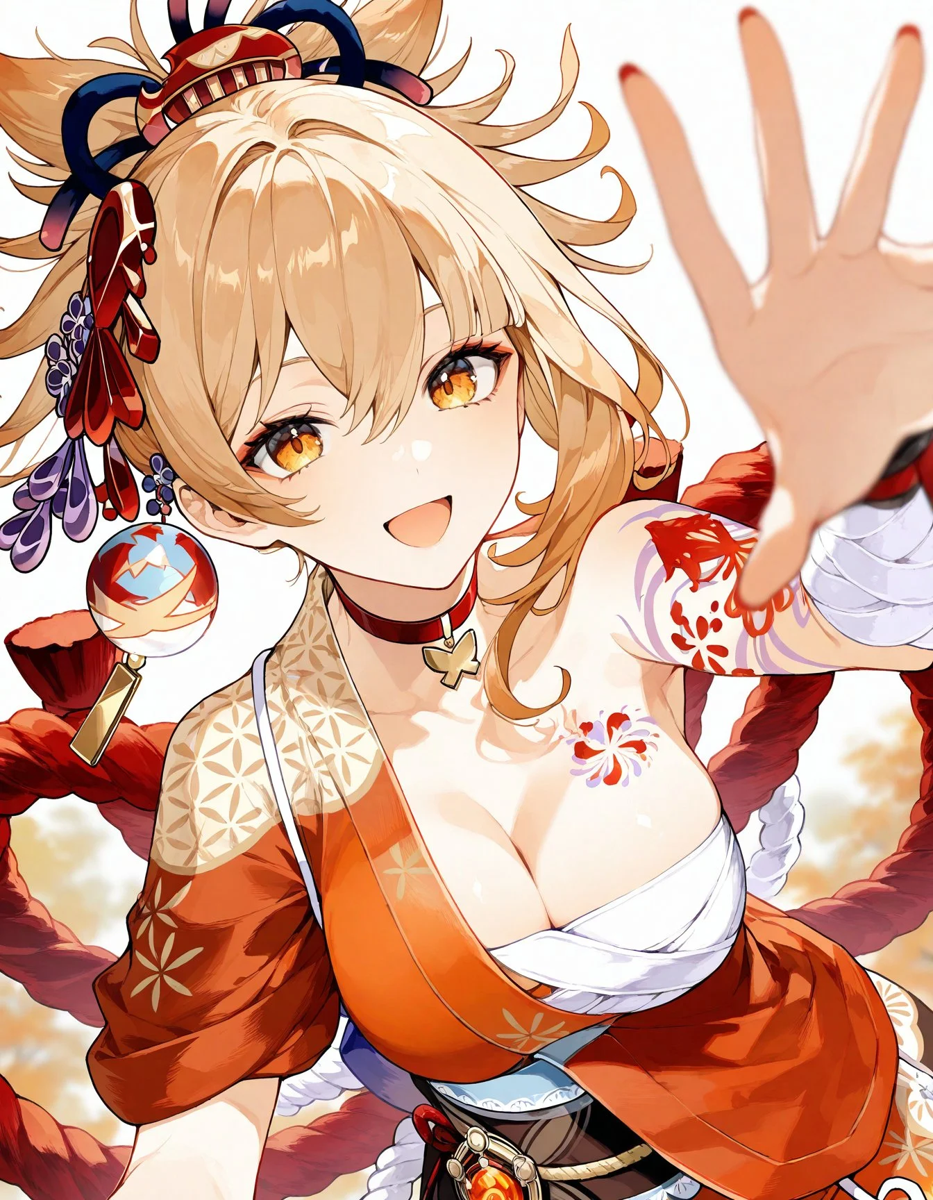sample, 1girl, red eyes, hair between eyes, blonde hair, cowboy shot, masterpiece, very aesthetic,