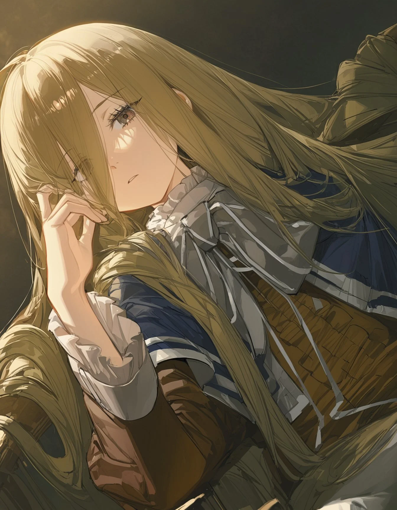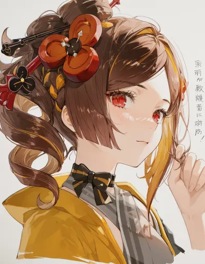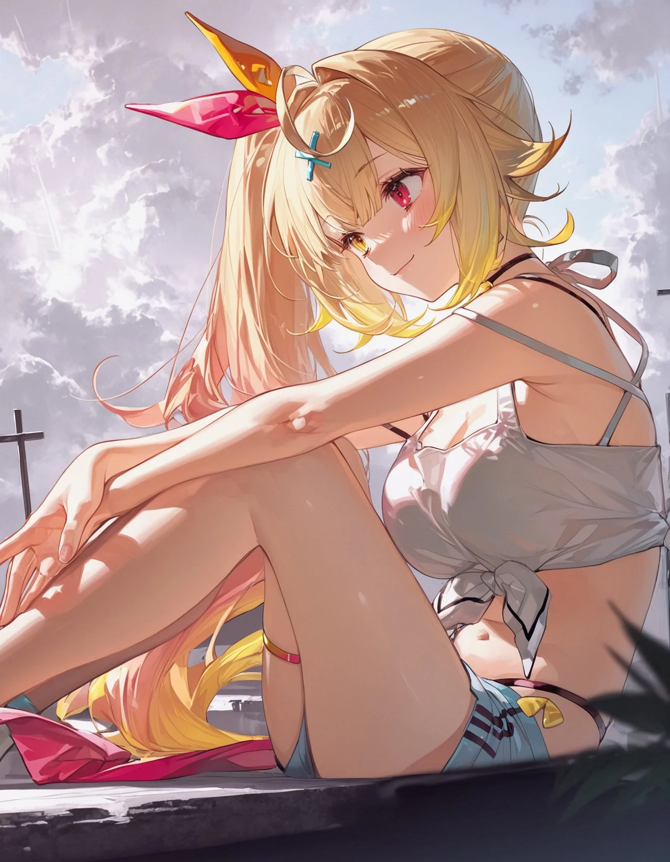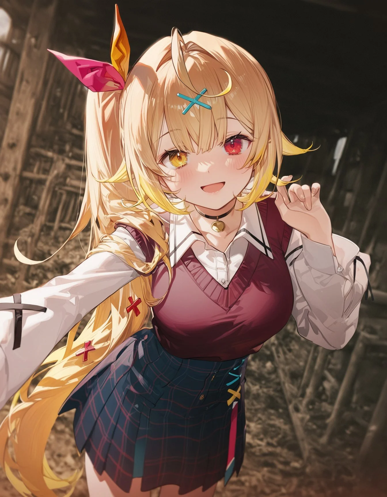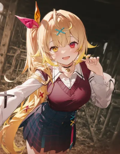 sample, 1girl, red eyes, hair between eyes, blonde hair, cowboy shot, masterpiece, very aesthetic,