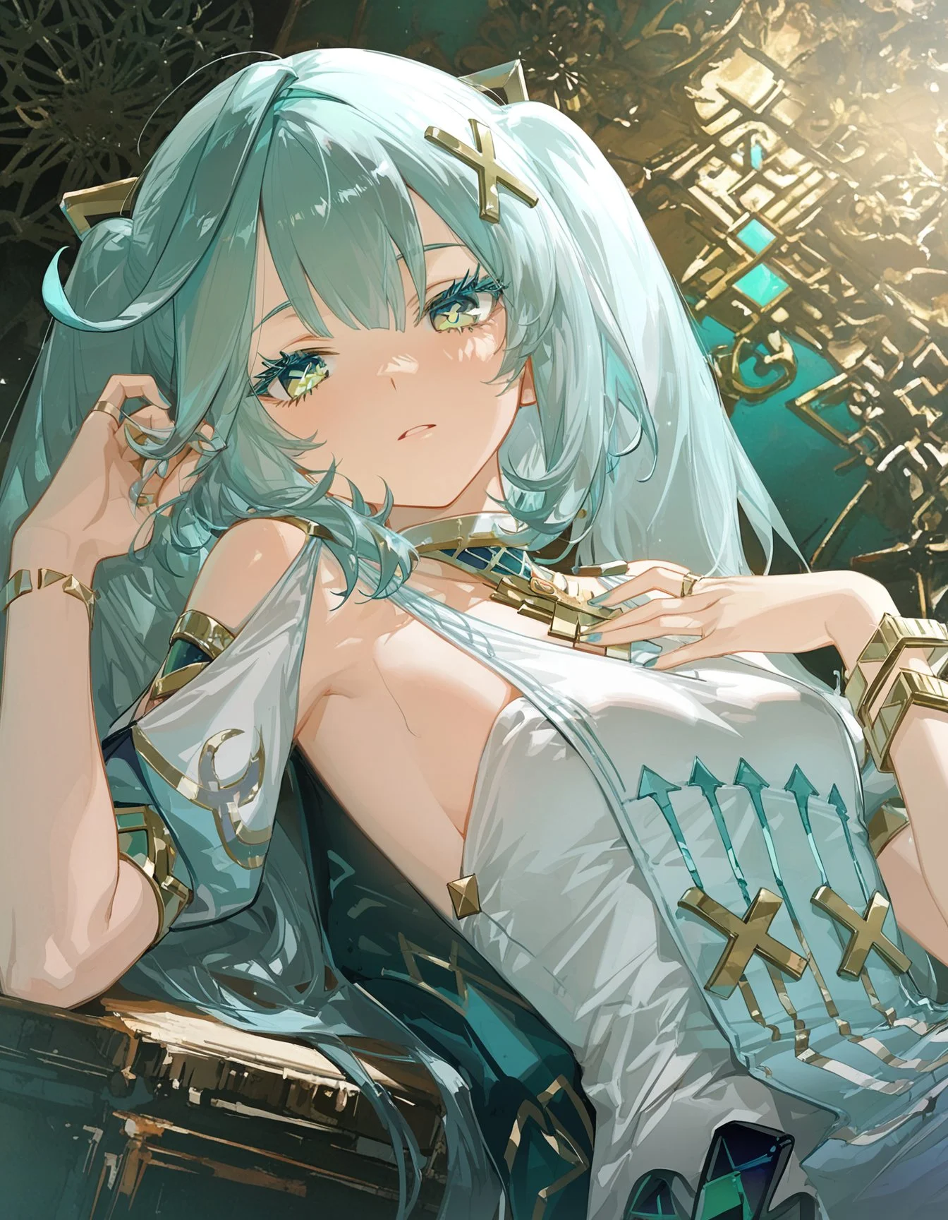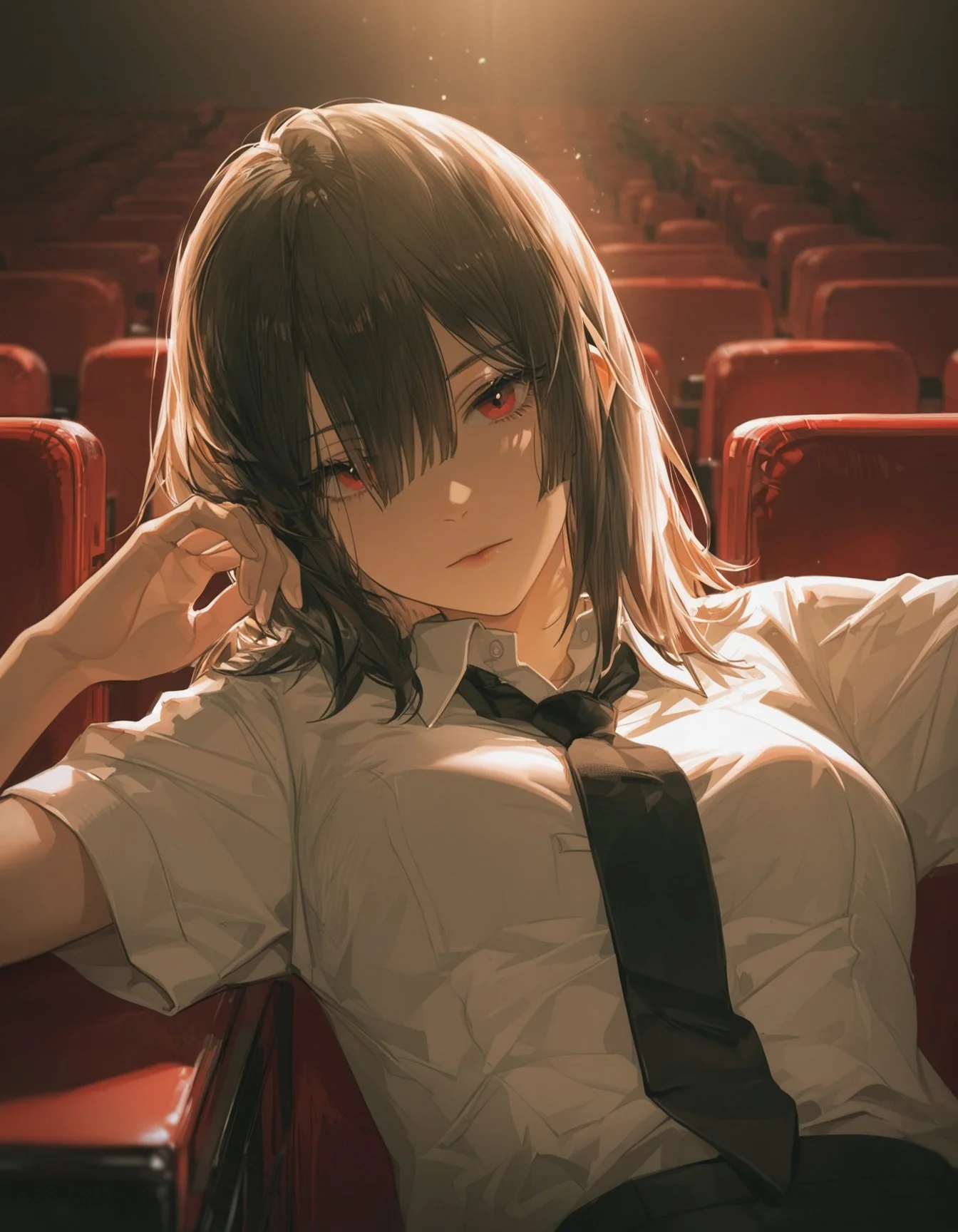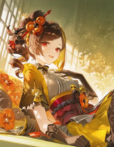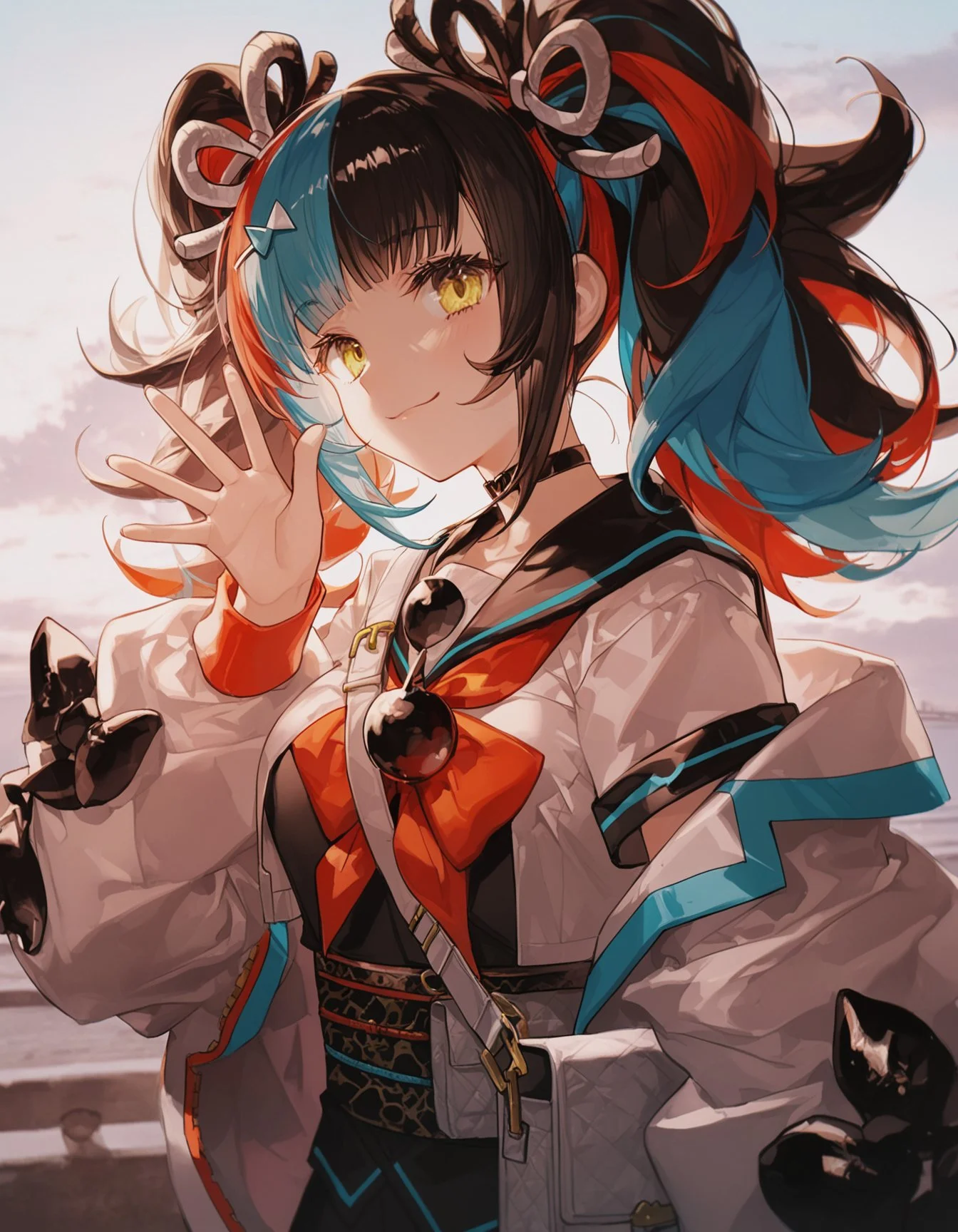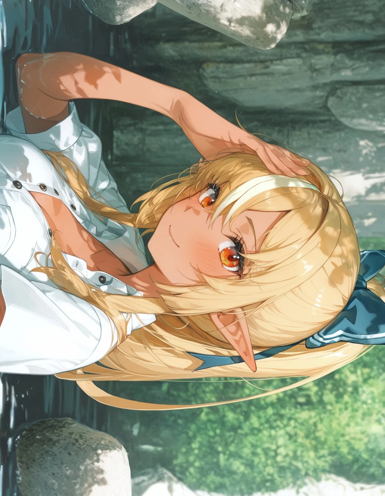 sample, 1girl, red eyes, hair between eyes, blonde hair, cowboy shot, masterpiece, very aesthetic,
